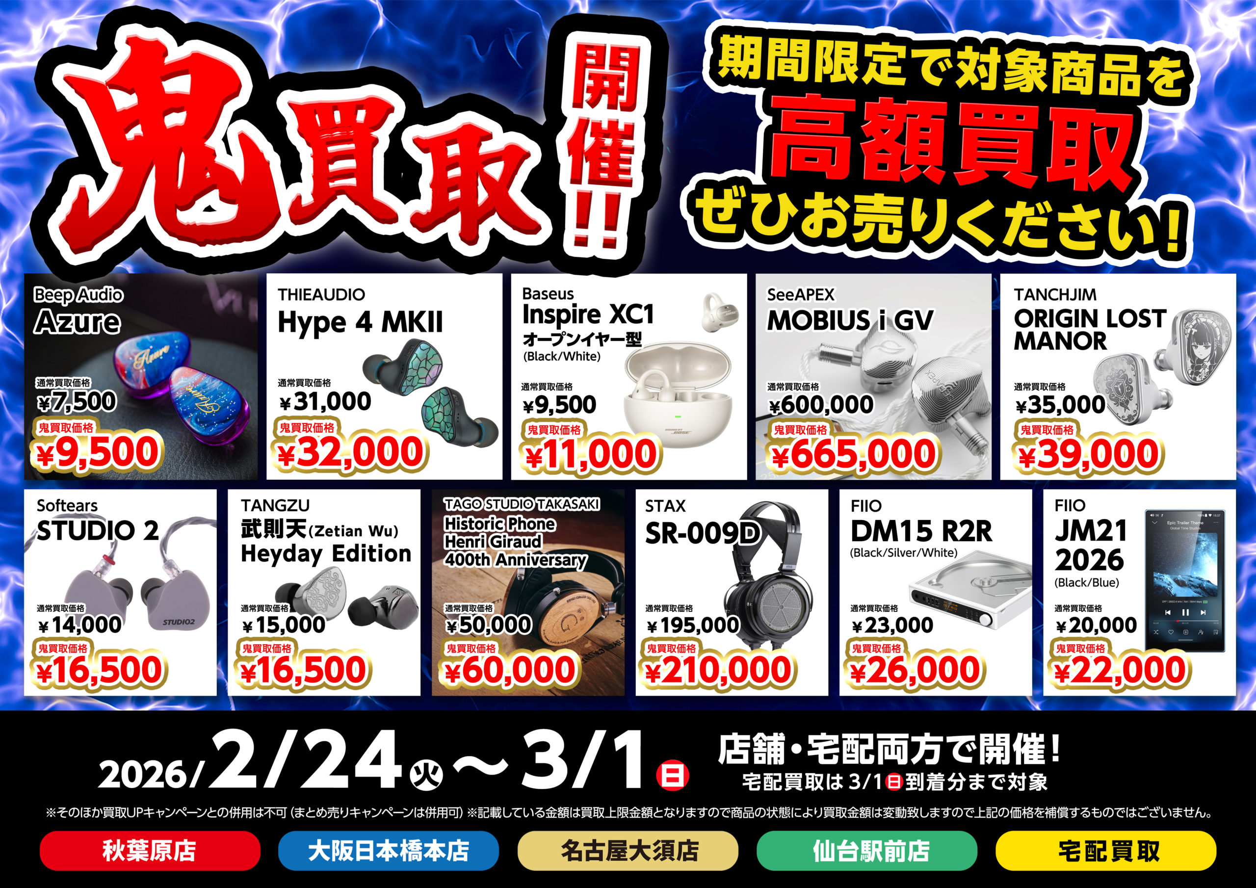 秋葉原店 / 大阪日本橋本店 / 名古屋大須店 / 仙台駅前店 / 宅配買取 で開催!