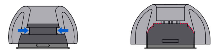 AZLAの独自最新技術「可変厚設計」を採用。イヤーピース先端に向かって薄くなる独自のテーパード構造設計を進化させ、部分的に厚みを変化させることでさらなるフィッティング向上を実現しました。均一な厚さの標準的なイヤーピースとは異なり、テーパード構造設計は内耳側に向かって薄くなるため、スムーズな耳への挿入、快適性と密閉性能の両方を向上させます。このテーパード構造をアップデートした可変厚設計は、傘の外耳側の一部分の厚みの調整までも可能にしたことで、耳内圧を低減しつつさらに外部騒音の確実な遮断を実現します。