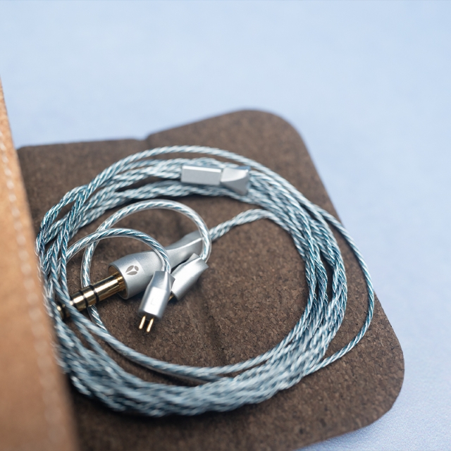 プラグの角度は、地球の公転面に対する地軸の傾き「66.5 度」と一致するように設計されました。1.3mmの銀メッキ銅芯線を2芯構造で構成し、軽量で柔らかく、存在を感じさせない「ノンセンサリー(無感覚)」な装着感を追求しています。