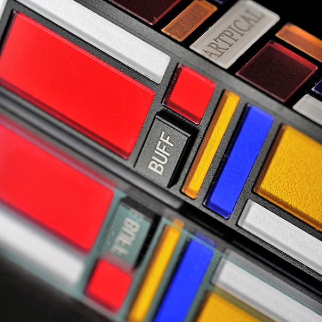 赤、青、黄の三原色と黒の直線による構成は、複雑な音楽信号を純粋な「音」という秩序へ昇華させるプロセスを象徴しています。高精度なCNC加工と、色鮮やかで耐久性の高い表面処理を組み合わせ、所有する喜びを満たす工芸品としてのクオリティを追求しました。