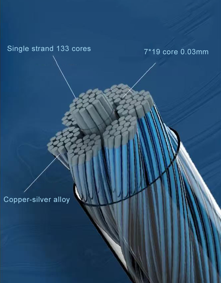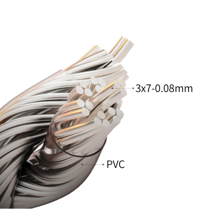 AllCuAg8(オールシーユーエージーエイト)もYongseのブランドとしてはエントリークラスに位置付けられます。銅線の銀メッキではなく、銅と銀の合金を採用しており、1コアあたり133線を使用し左右合わせて8コア仕様となっております一本あたり0.03mmというリッツ線でウォームと解像度表現を両立するケーブルに仕上がっています。