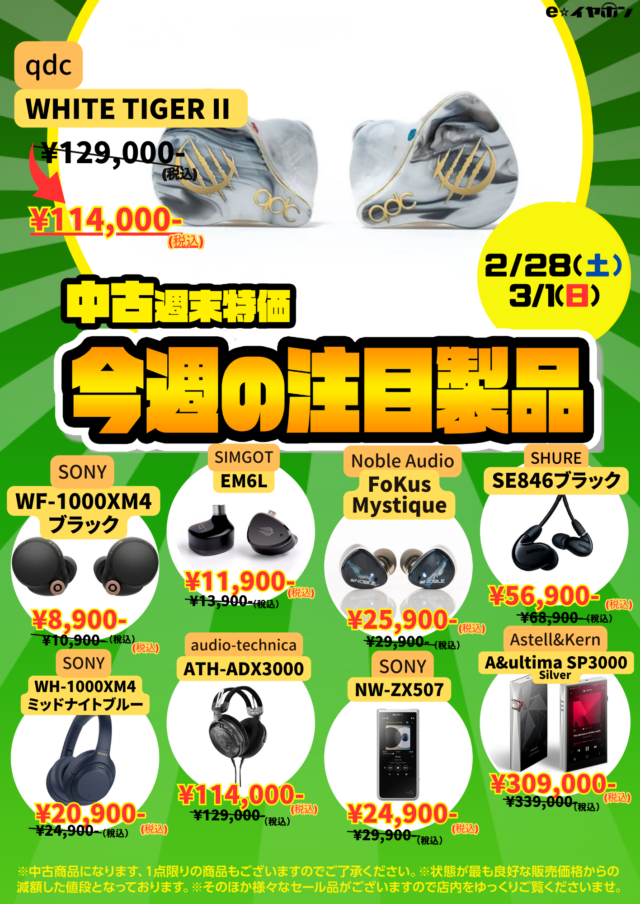 以上、お得なセール情報でした。e☆イヤホン リユース営業部のかわちゃんがお送りいたしました!