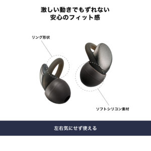 耳あたりの良いソフトシリコン素材を採用 柔らかいソフトシリコン素材と、耳の形に沿った設計により、長時間でも快適な装着感を実現。ライブに身を委ねて体を動かしても、しっかりと耳に保持します。