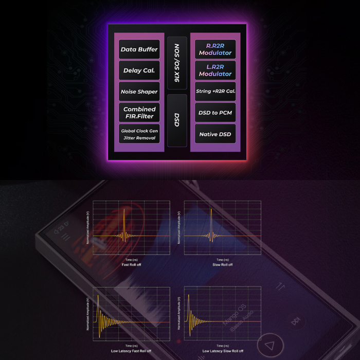 DX270はFPGA-Master3.0を搭載しています。FPGA-Master3.0はiBassoが長年蓄積してきたアルゴリズムをベースに開発されており、LUTロジックユニット数はバージョン2.0の7.5倍となっています。オーディオ・マスターであるFPGA-Master3.0は、SoCから直接データを要求することができ、2つの超低ノイズAccusiliconフェムト・クロック水晶発振器により、完全に同期されたシングルクロックソースを構築し、ナノ秒精度の制御とジッターの最小化を実現し、デジタル信号をソースから純粋な状態に保ちます。このおかげで、DX270はNOSに加えて4つの自社開発のフィルターをサポートし、DX270に最適化された卓越したリスニング体験をもたらします。