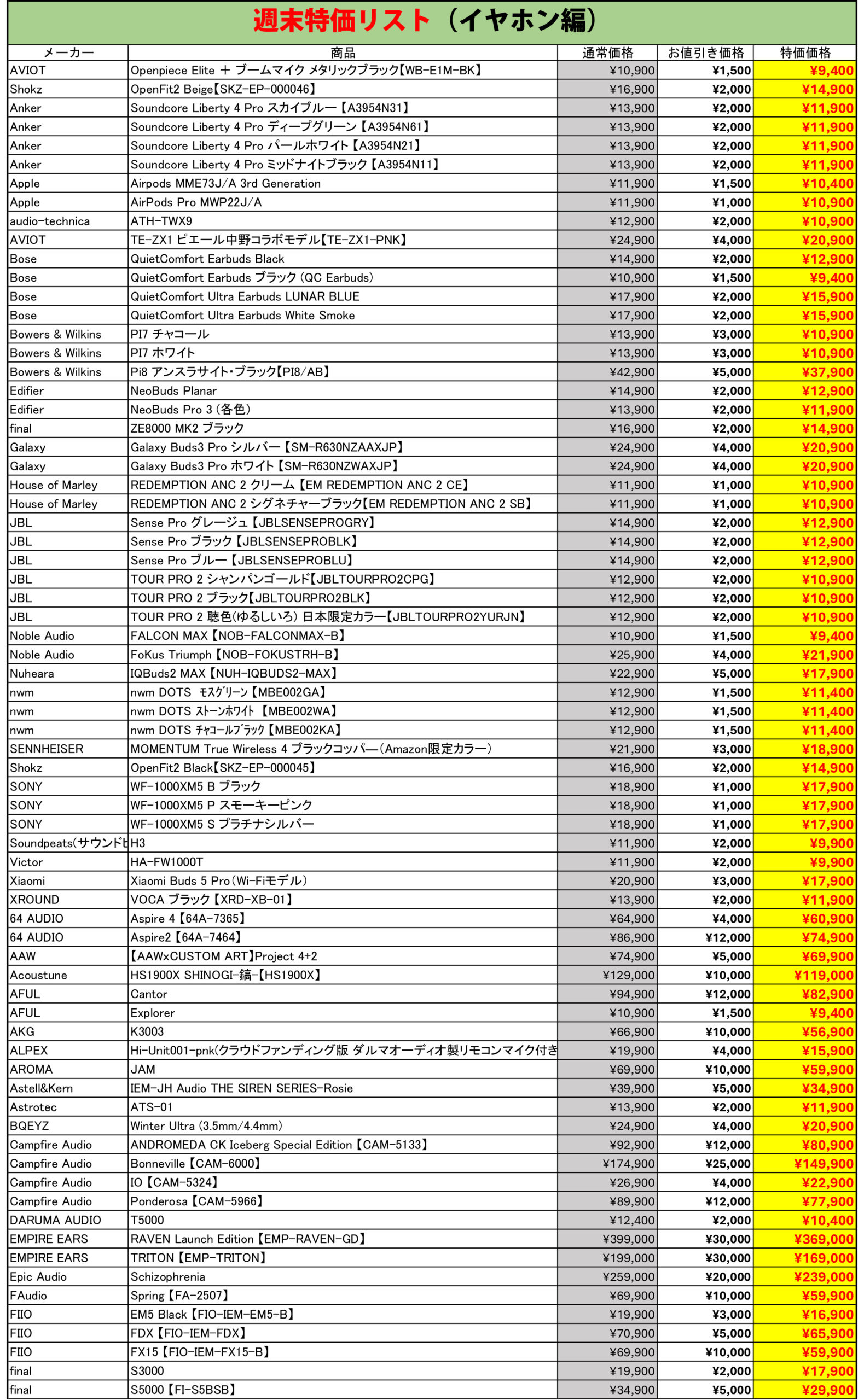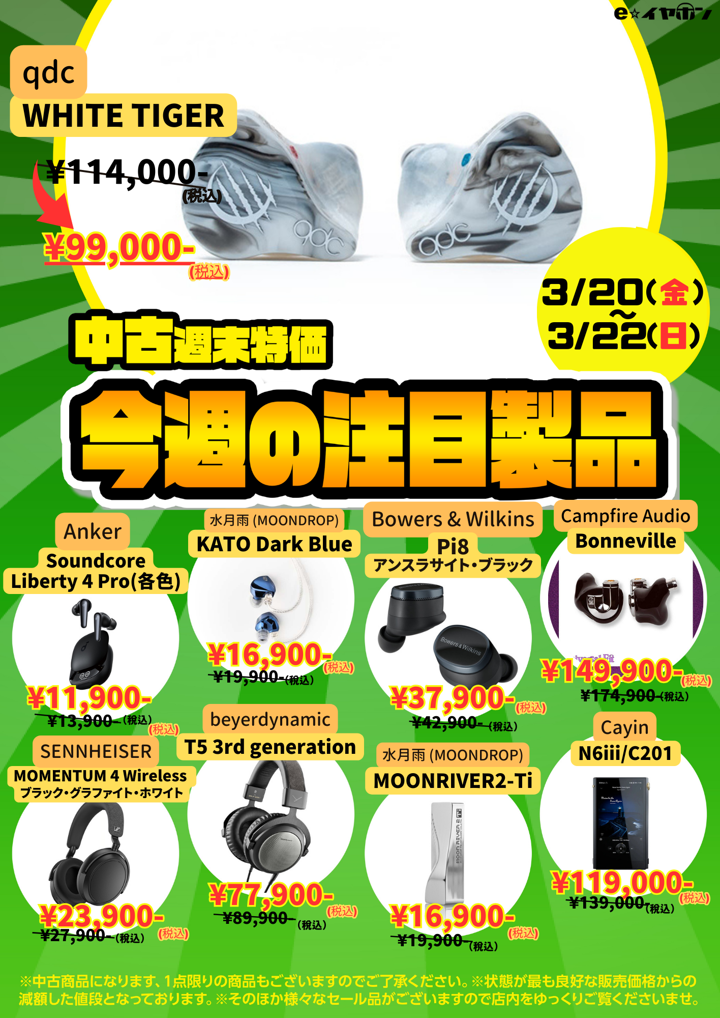 今週もe☆イヤホンの中古週末特価を開催!お得な製品が盛り沢山な内容でお送りします