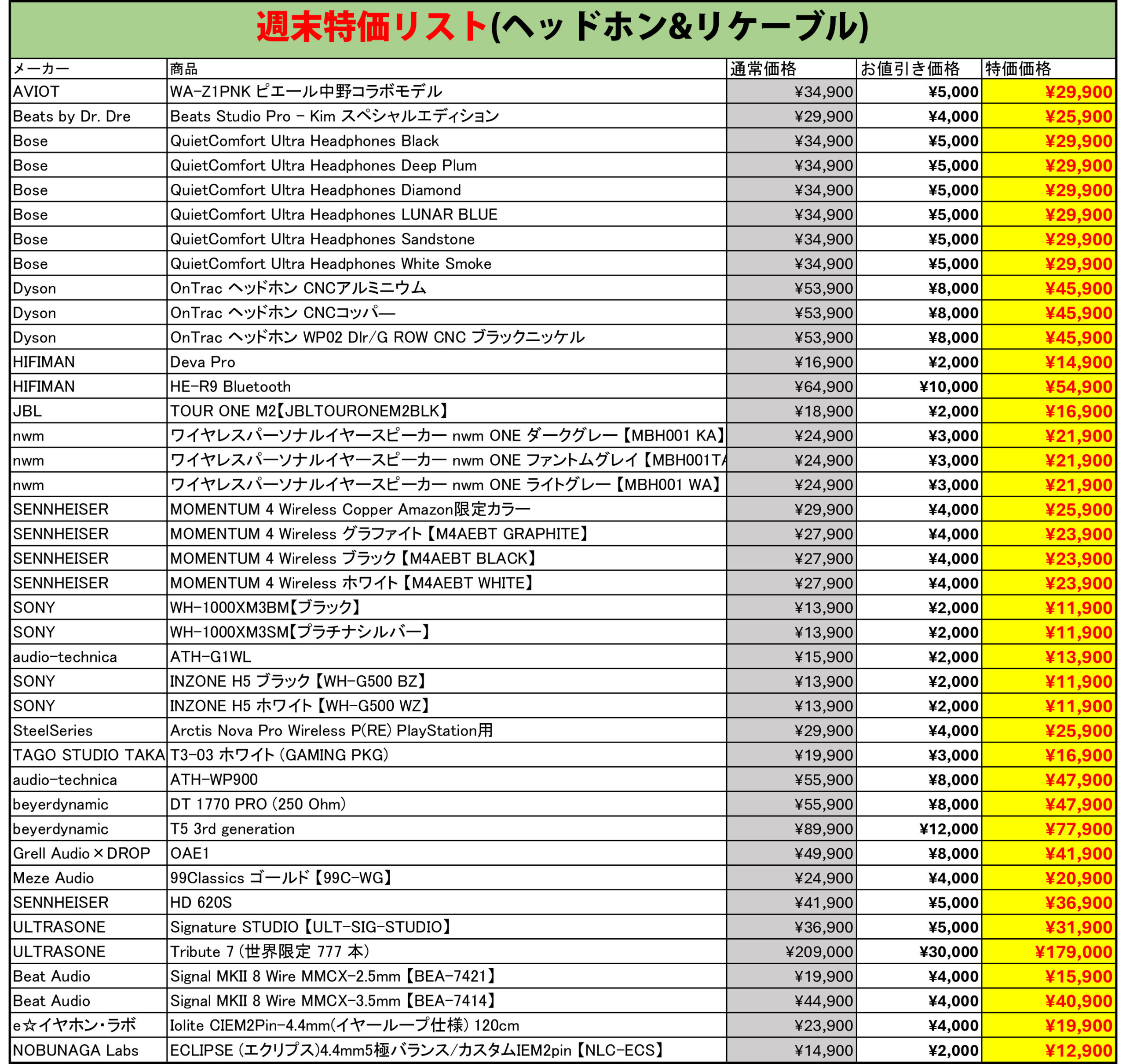 週末特価対象製品一覧
