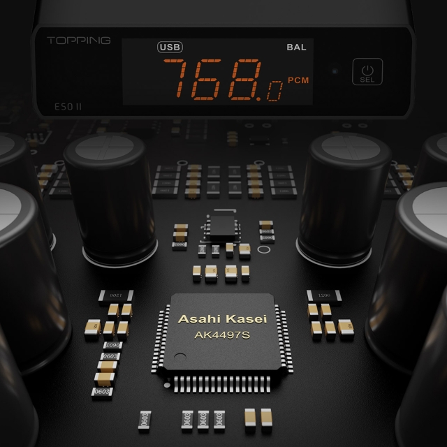 コンパクトデスクトップDAC『E50II』には、洗練された低ノイズ技術を搭載したAKMの「AK4497S」DACチップを採用。
