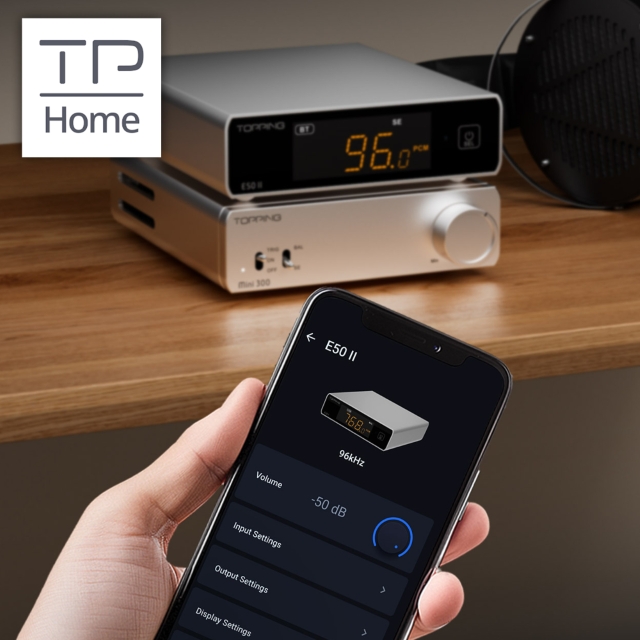 『E50II』は、TOPPING社が開発した専用APP「TOPPING Home」対応モデルです。アプリとシームレスに連携し、基本操作をスマートフォンから操作することを可能にしました。