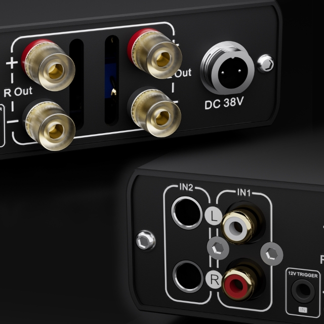 『Mini300』は、「バランス(6.35mmTRS)入力とアンバランス(RCA)入力」の両方をサポートし、追加のアダプターなしで互換性を確保します。「12Vトリガー」は、他のデバイスと連動し、自動で電源のON/OFF操作が可能です。
