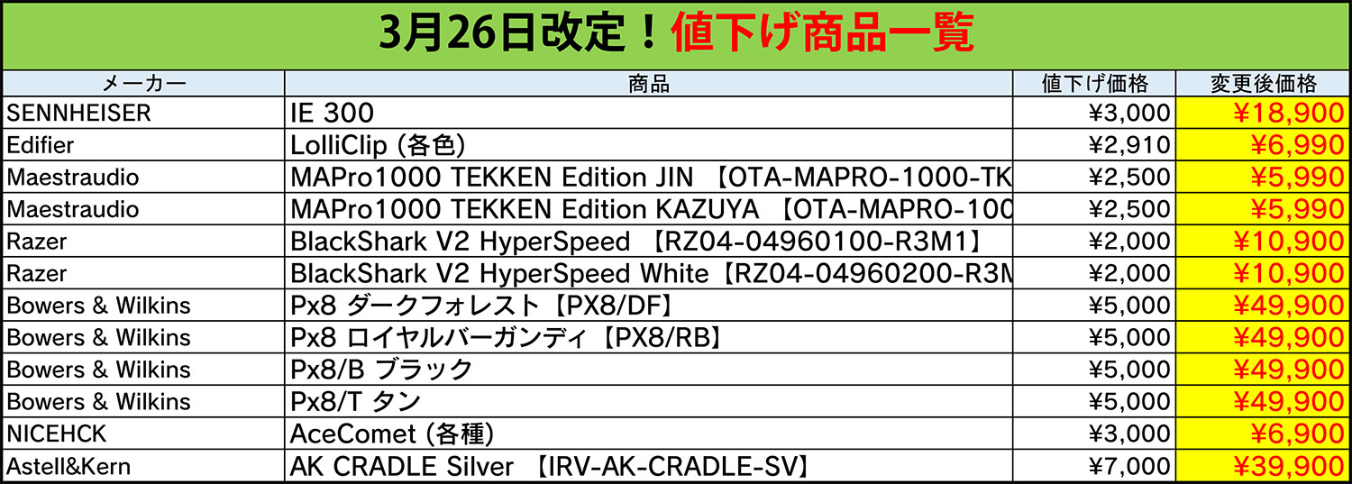 以上、お得な価格改定情報でした。e☆イヤホン リユース営業部のかわちゃんがお送りいたしました!