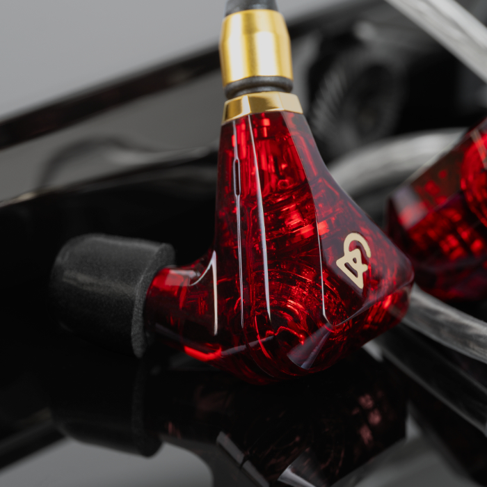 Trifecta Crimson は、Campfire Audio がドライバーメーカーと共同開発した Amorphous Diamond-Like Carbon(ADLC)振動板を採用。高い剛性を持つ ADLC コーティングにより、優れた過渡応答と精密な振動制御を実現し、高い解像度と正確な音の再現性を可能にしています。