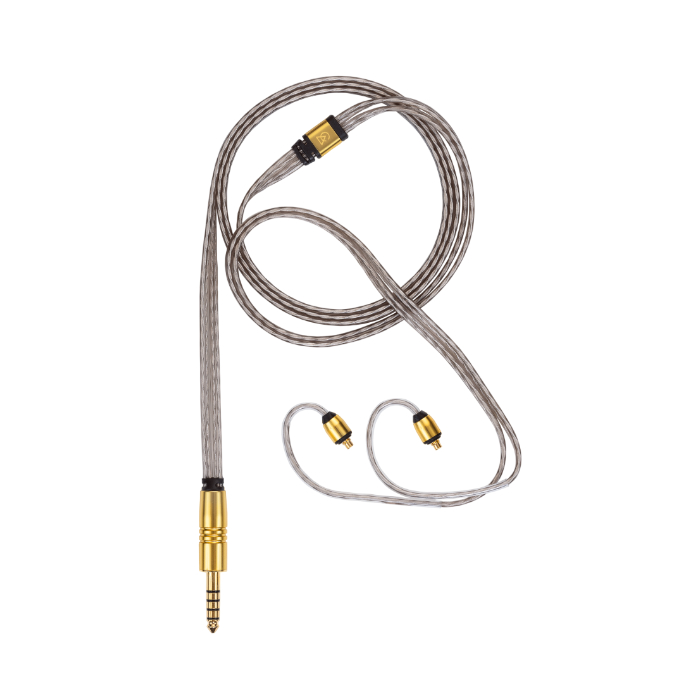 付属ケーブル「Time Stream Silver Cable」は、純銀導体 4 芯構成を採用。スモーキーグレーのリボンジャケット仕様により、優れた取り回しと洗練された外観を両立しています。プラグは 3.5mm / 4.4mm の両方を同梱。コネクターには高品質なカスタムマトリクス MMCX コネクターを採用し、優れた耐久性と安定した接続性を実現しています。