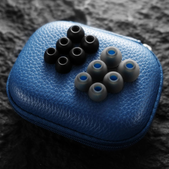 ブラック・イヤーチップは、ダイナミックレンジの広がり、より広いサウンドステージ、強化された低音、豊かな中音域、そして臨場感あふれるボーカルを実現します。ブルー・ブラック・イヤーチップは、明るく繊細な高音、クリアでレスポンスの良い低音、そして楽器の細部まで豊かに再現します。
