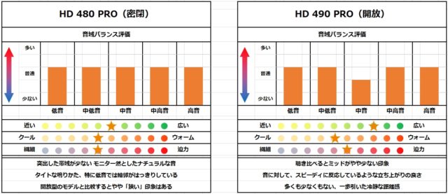 HD 490 PRO との聴き比べ