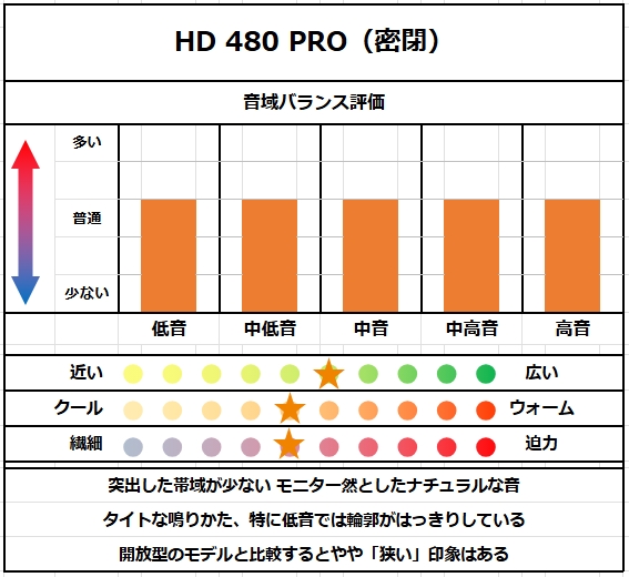 HD 480 PRO →音の輪郭がタイトで、膨らみが少ない。