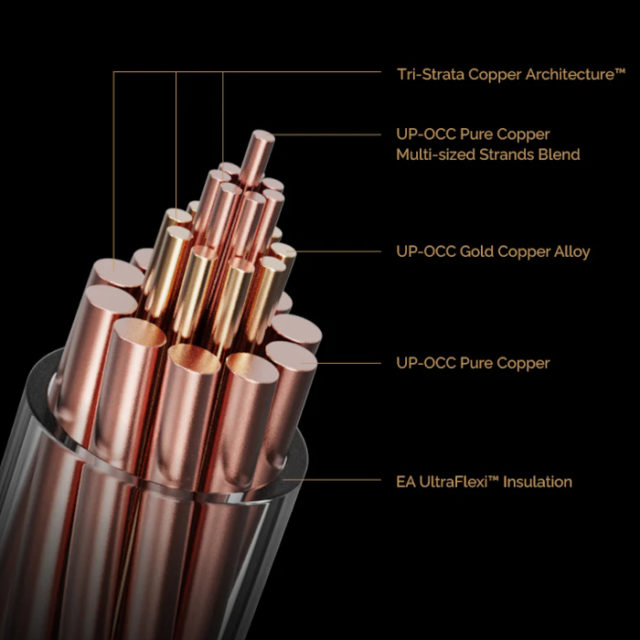 UP-OCC純銅とGold Copper Alloy(金合金銅)を組み合わせた三層構成により、力強さ・制御力・解像度を高次元で両立。